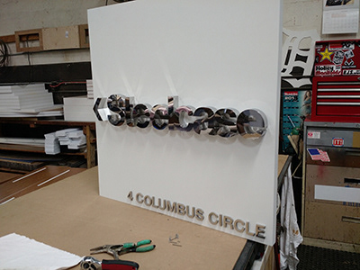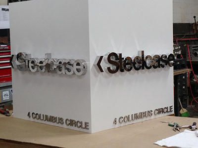 Exterior Signs for Steelcase's New York showroom featuring mirror finished metal logos.